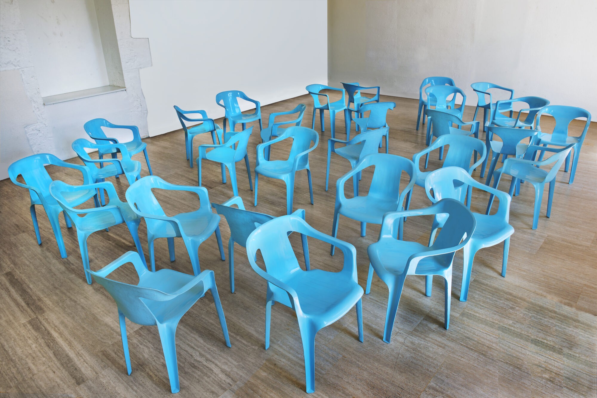 Faire surgir de la singularité dans un monde sans différence est le leitmotiv de l’artiste Marylène Negro depuis les années 1990. Une approche qui la lie directement au travail d’Étienne Bossut qui réalise des moulages d’objets manufacturés, leur donnant ainsi un caractère unique. L’univers marchand et publicitaire est un terrain de jeu où chacun à leur manière a développé un art qui prêche le faux pour s’approcher du vrai et se joue des paradoxes. Bien que familiers, regards vides et couleurs Pop dégagent une étrangeté perceptible. Du ready-made au remake s’immiscent les indices d’un déplacement entre l’objet, sa représentation et son interprétation, une histoire de sculpture pour Étienne Bossut, une quête de l’autre pour Marylène Negro, deux regards dans un rapport rapproché au monde.